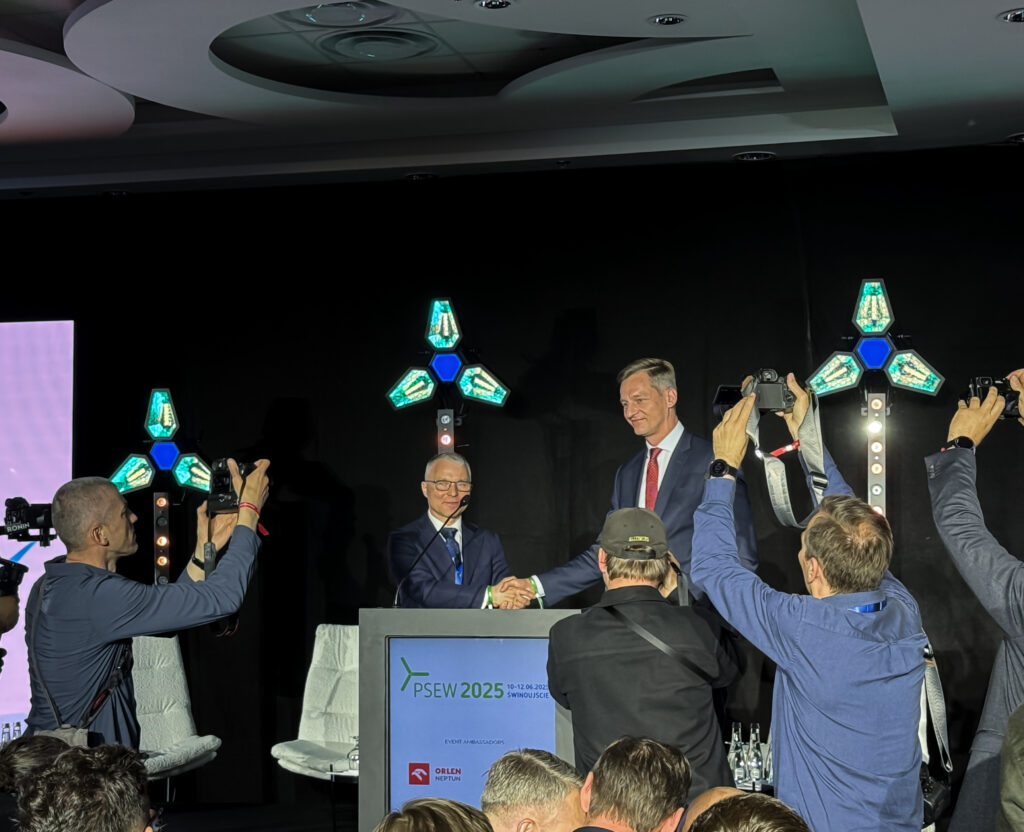 Ocean Winds, globalna spółka specjalizująca się w morskiej energetyce wiatrowej, utworzona jako joint venture 50-50 przez EDP Renewables i ENGIE, podpisała kontrakt dzierżawy terminala instalacyjnego w porcie Świnoujście z ORLEN Neptun II – spółką z portfolio Orlen Neptun. Uroczyste podpisanie umowy odbyło się podczas konferencji PSEW2025 w Świnoujściu, na głównej scenie wydarzenia, z udziałem Kacpra Kostrzewy, Dyrektora Zarządzającego Ocean Winds Polska oraz Janusza Bila, Prezesa Zarządu ORLEN Neptun.