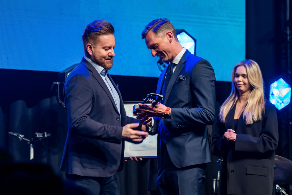 Kacper Kostrzewa odbierający nagrodę „Lider Transformacji” od PowerConnect Awards 2026