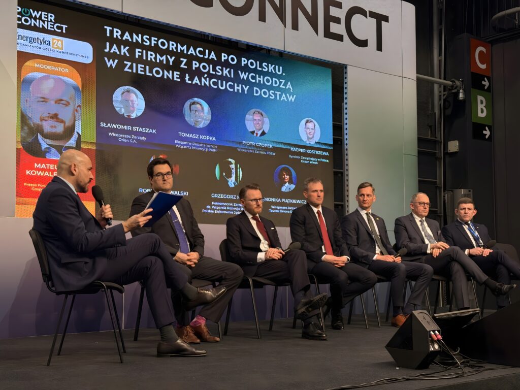 Kacper Kostrzewa podczas panelu „Transformacja po polsku. Jak firmy z Polski wchodzą w zielone łańcuchy dostaw” podczas PowerConnect 2026
